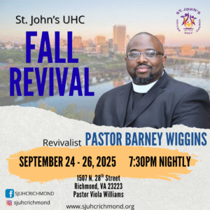 St. John’s will have Fall Revival with guest revivalist Pastor Barney Wiggins, Living Faith Church, Portsmouth, VA.